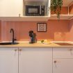 Nella zona giorno troverai un comodo letto matrimoniale, perfetto per rilassarsi dopo una giornata trascorsa a esplorare la città. Inoltre, c'è un pratico angolo cucina completamente attrezzato, dotato di un tavolino e due sedie, dove potrai preparare e gustare la colazione o il pranzo in totale comodità.