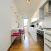 La cucina abitabile è stata arredata con frigorifero, freezer, forno elettrico forno microonde, una penisola per la colazione ed ogni utensile utile per cucinare. Dalla cucina si può accedere ad un balcone che affaccia sul residence interno pieno di verde.