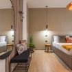 La prima cosa che colpisce è il grande terrazzo, pieno di piante verdi e rigogliose che creano una cornice naturale e romantica, mentre le luci soffuse aggiungono un tocco di intimità e romanticismo. È il luogo perfetto per cenette a lume di candela o per sorseggiare un bicchiere di vino sotto le stelle dopo una giornata trascorsa a visitare la città.