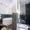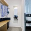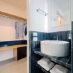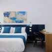 La camera blu è grande 20mq circa, dotata di tecnologia moderna e domotica all'avanguardia. Bagno interno con doccia.