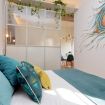Dall'area living si accede alla camera da letto anch'essa dallo stile ricercato e moderno arredata con un letto matrimoniale (160*200), un guardaroba, una cabina armadio e due comodini.