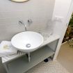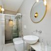 Dall'area Living si accede al bagno dotato di lavabo, doccia, wc e bidè.