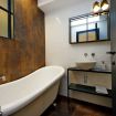 La zona notte ospita anche due comodi bagni dallo stile moderno dotati di sanitari, lavabo e uno attrezzato con doccia con soffione centrale e l'altro dotato di una vasca da bagno circolare che ricorda molto i bagni del passato.