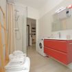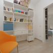 La casa è composta da un'accogliente area living con cucina e salotto, dove i colori verdi dell'interno rispecchiano quelli degli alberi che costeggiano il Tevere. Il pavimento in parquet chiaro aggiunge un tocco di eleganza e calore all'ambiente.